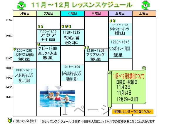 | ワンポイント月別 | ★★ | クロール・平泳ぎ の出来る方対象 |
